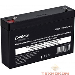 Exegate EP234536RUS Аккумуляторная батарея Exegate EXG672, 6В 7.2Ач, клеммы F1